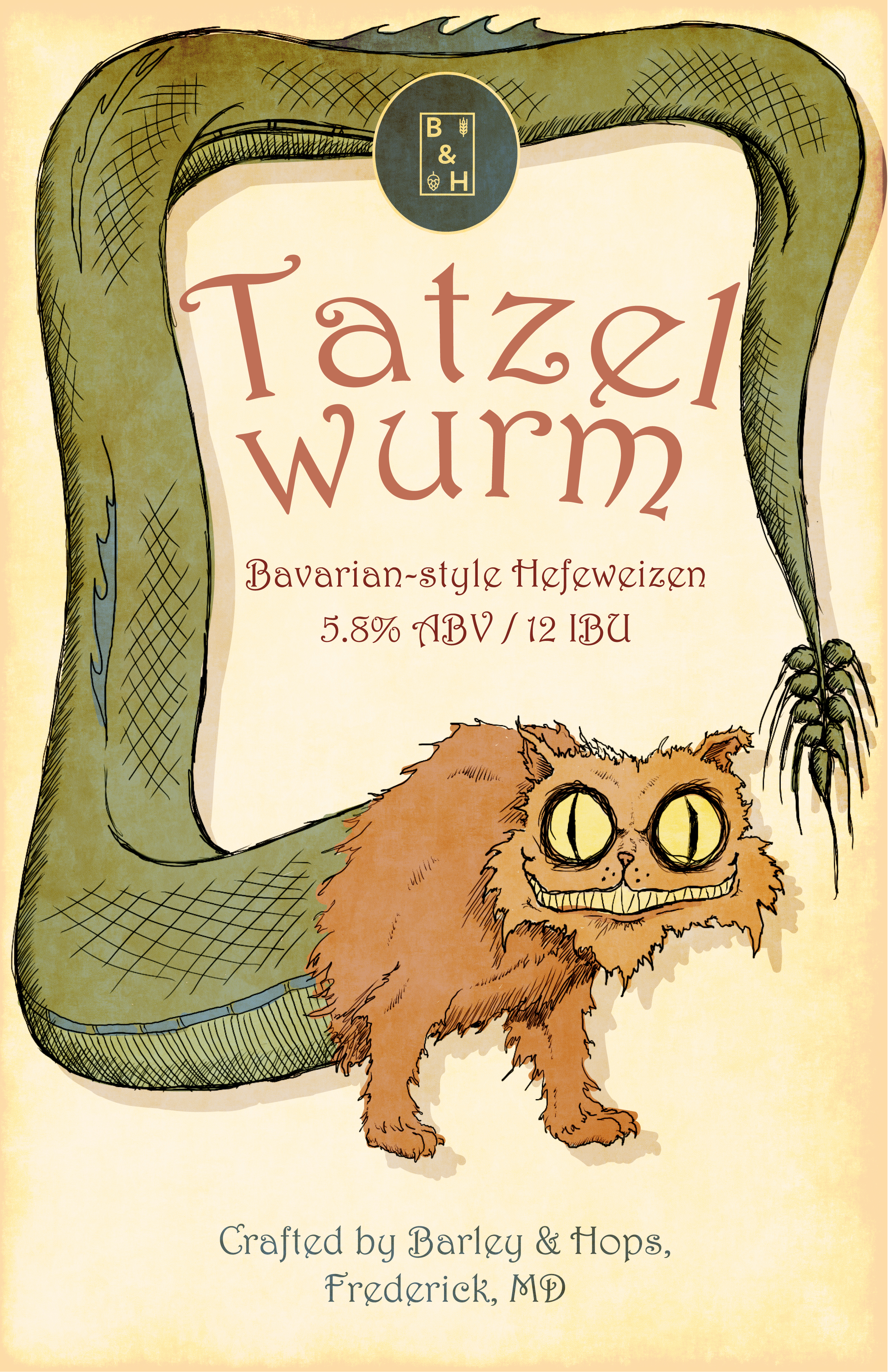 Tatzelwurm Poster Project Details Client Barley & Hops Date 2018 Skills Print Design Project Description One of a series of posters created for specific beers brewed at Barley & Hops. Like What You See? Contact Us